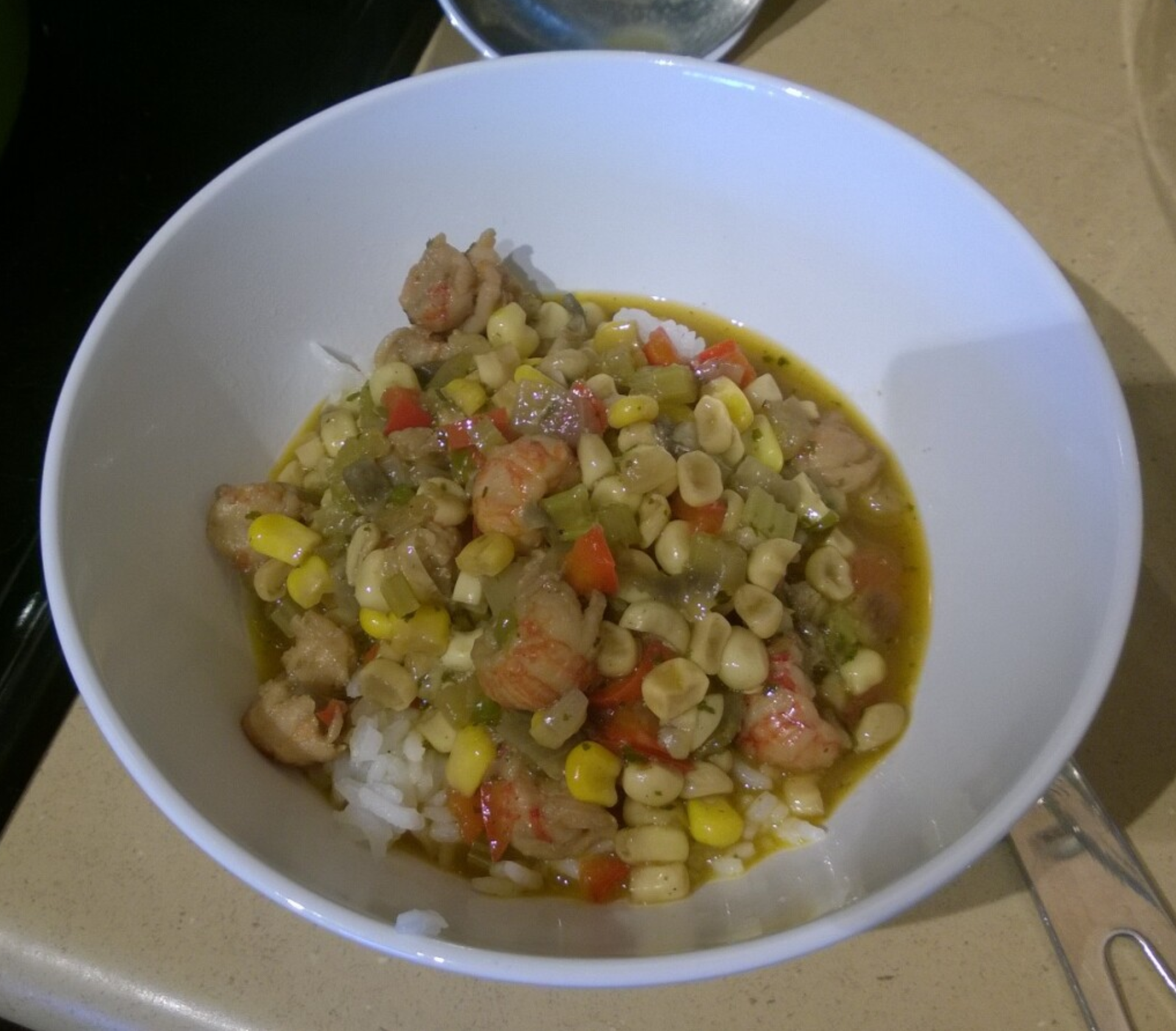 - Once the corn is ready, remove from heat and add reserved shrimp.
